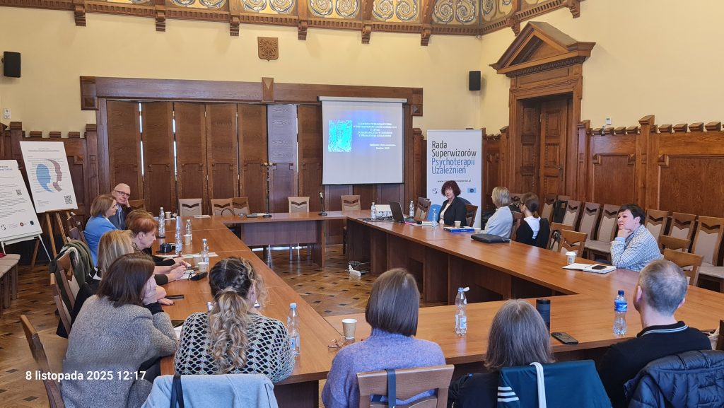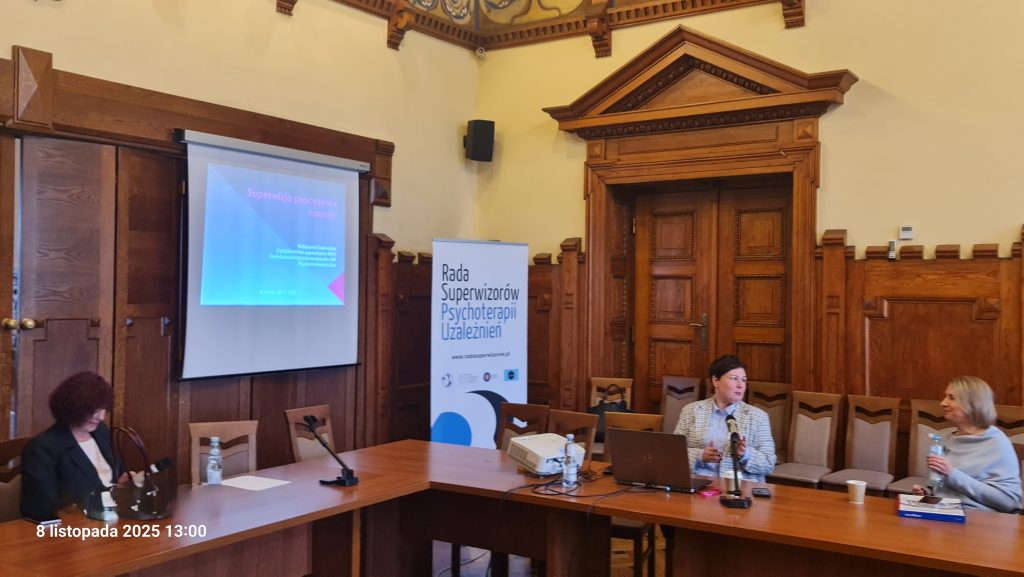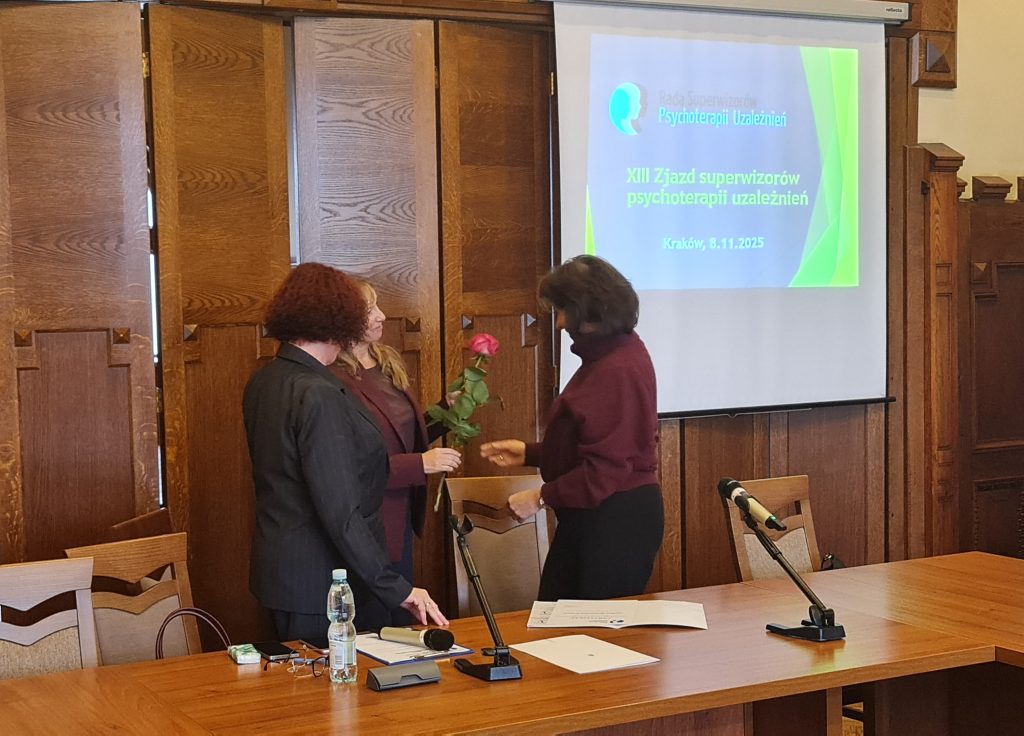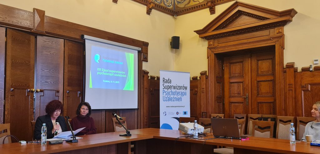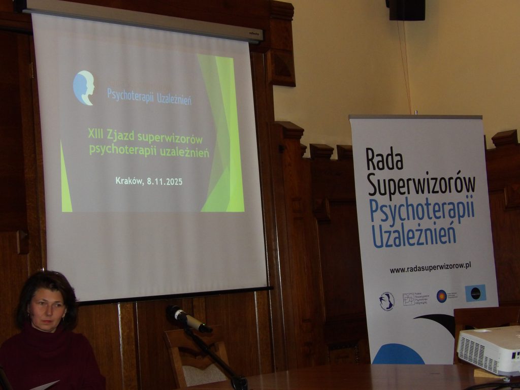 ,,W dniu 08.11.2025 r. po raz kolejny miałam przyjemność uczestniczyć w XIII już Zjeździe  superwizorów psychoterapii uzależnień, który odbył się w przepięknych wnętrzach Urzędu Miasta Krakowa. Podjęto na nim wiele istotnych dla pacjentów, terapeutów i superwizorów kwestii związanych z prawną regulacją zawodu specjalisty psychoterapii uzależnień.